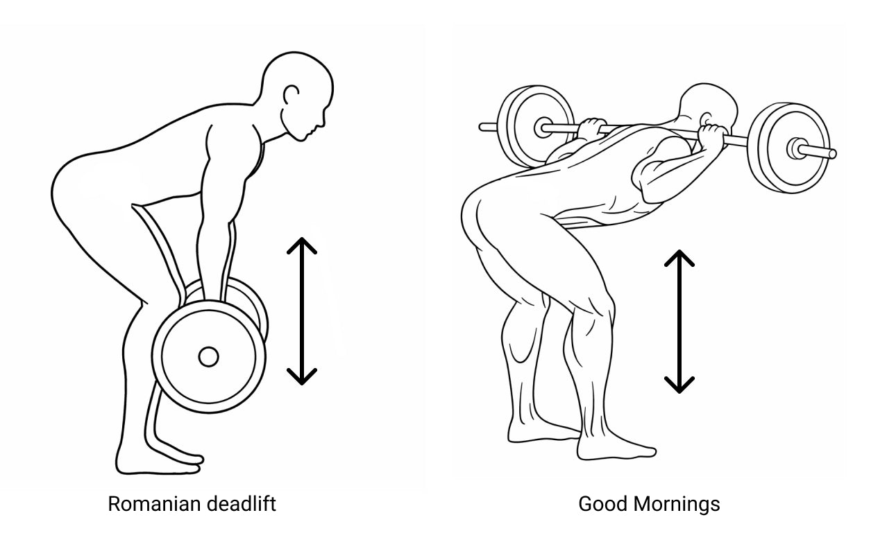 Hinge movements like Romanian deadlifts and good mornings teach you how to properly use your hips – which is essential for effective glute training.